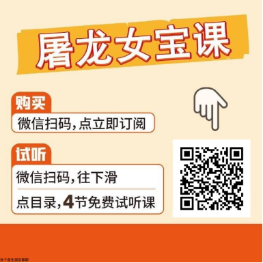 屠龙女宝课,订阅请扫码,38节视频课程永久有效,往下滑点目录,还可观看免费试听课: