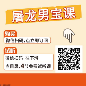 屠龙男宝课,订阅请扫码,38节视频课程永久有效,往下滑点目录,还可观看免费试听课: