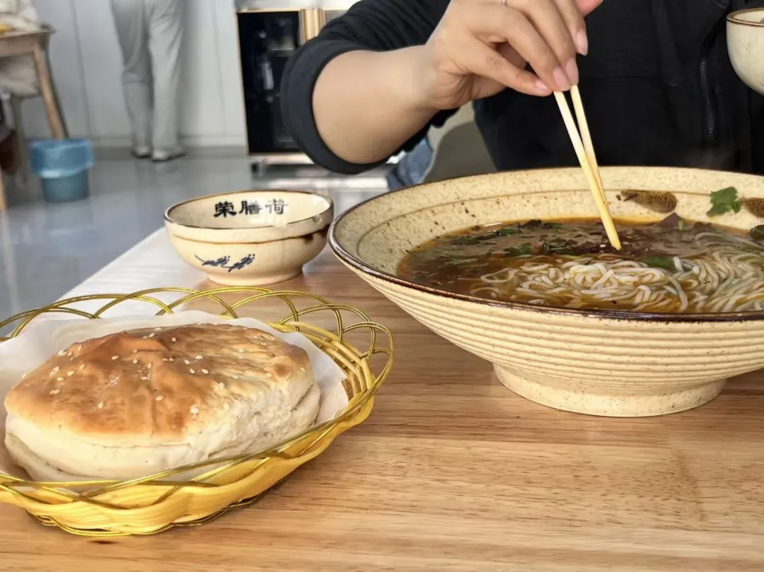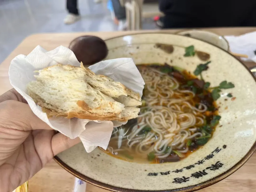 Lynn在享受酸汤汉堡和羊肉粉配白芝麻发面饼🫓。