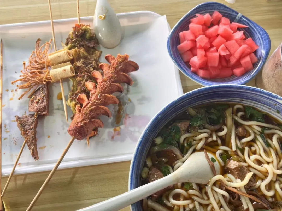 △老贵州米线(烟台莱山),牛肉粉配炸串、酸萝卜