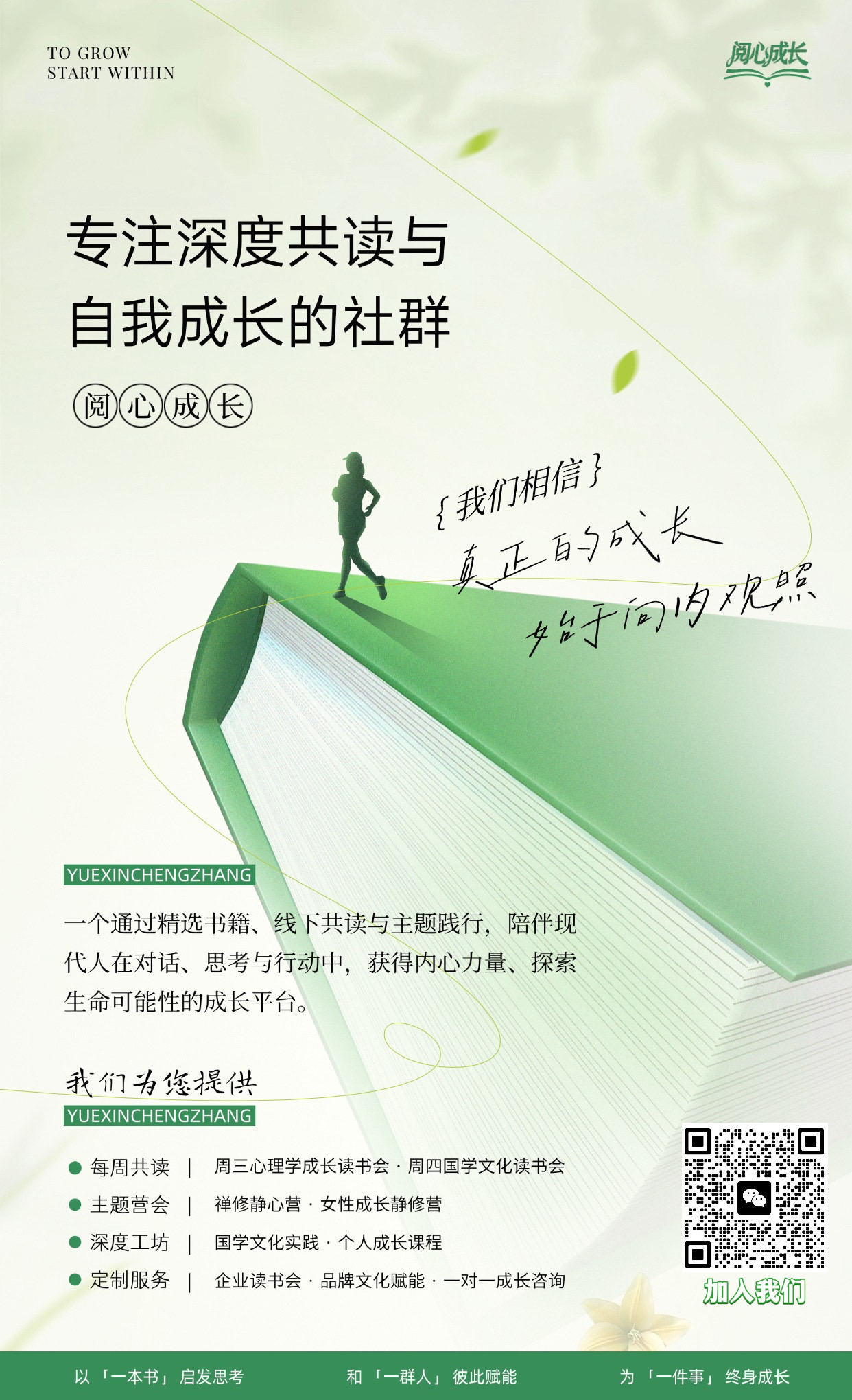 如果你也对自我探索、个人成长感兴趣,欢迎加入「阅心成长」社群。我们会定期举办线下读书会、主题分享,连接更多同频的伙伴。