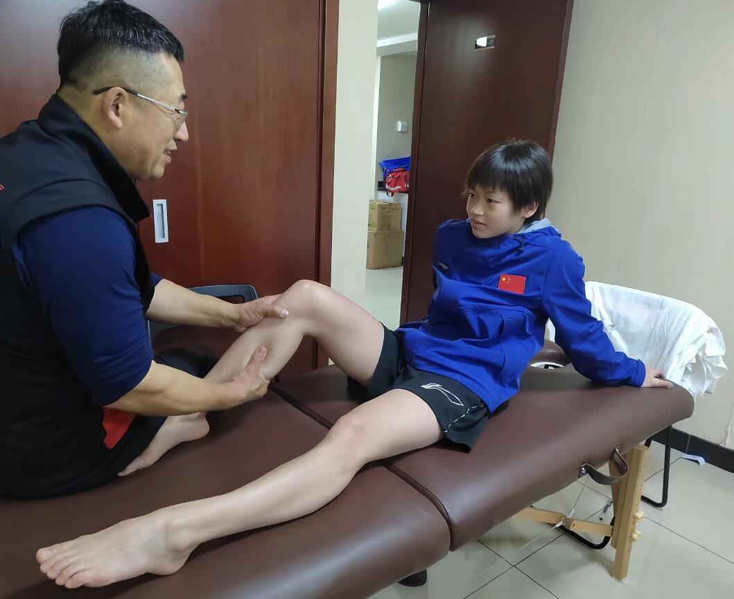 再拍她的脚踝,或者是贴满肌贴的肩膀。