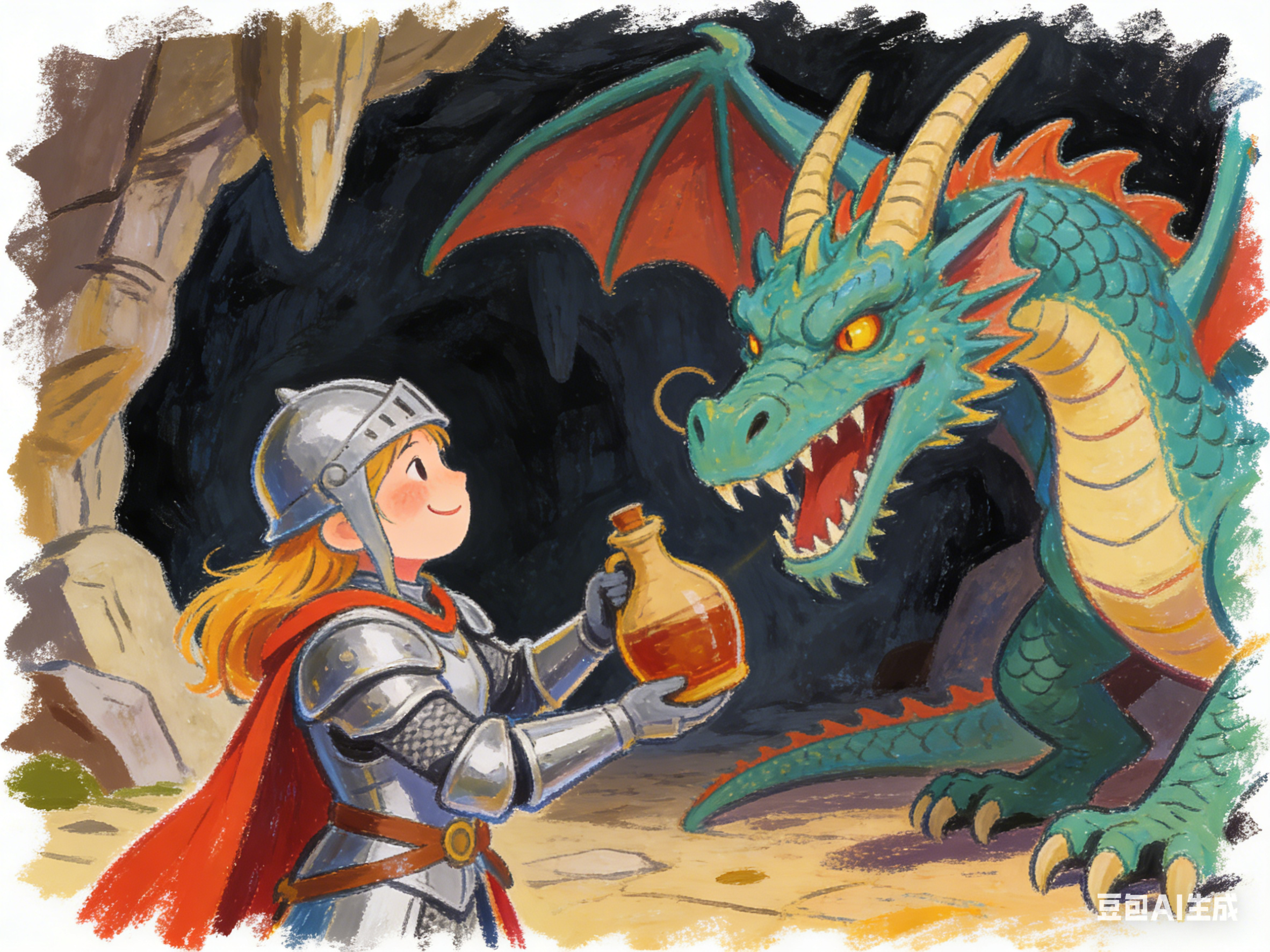 恶龙愣住了。它活了几百年,见过无数来讨伐它的勇士,有怒吼着冲上来的,有跪地求饶的,但从没有一个人,请它喝酒。