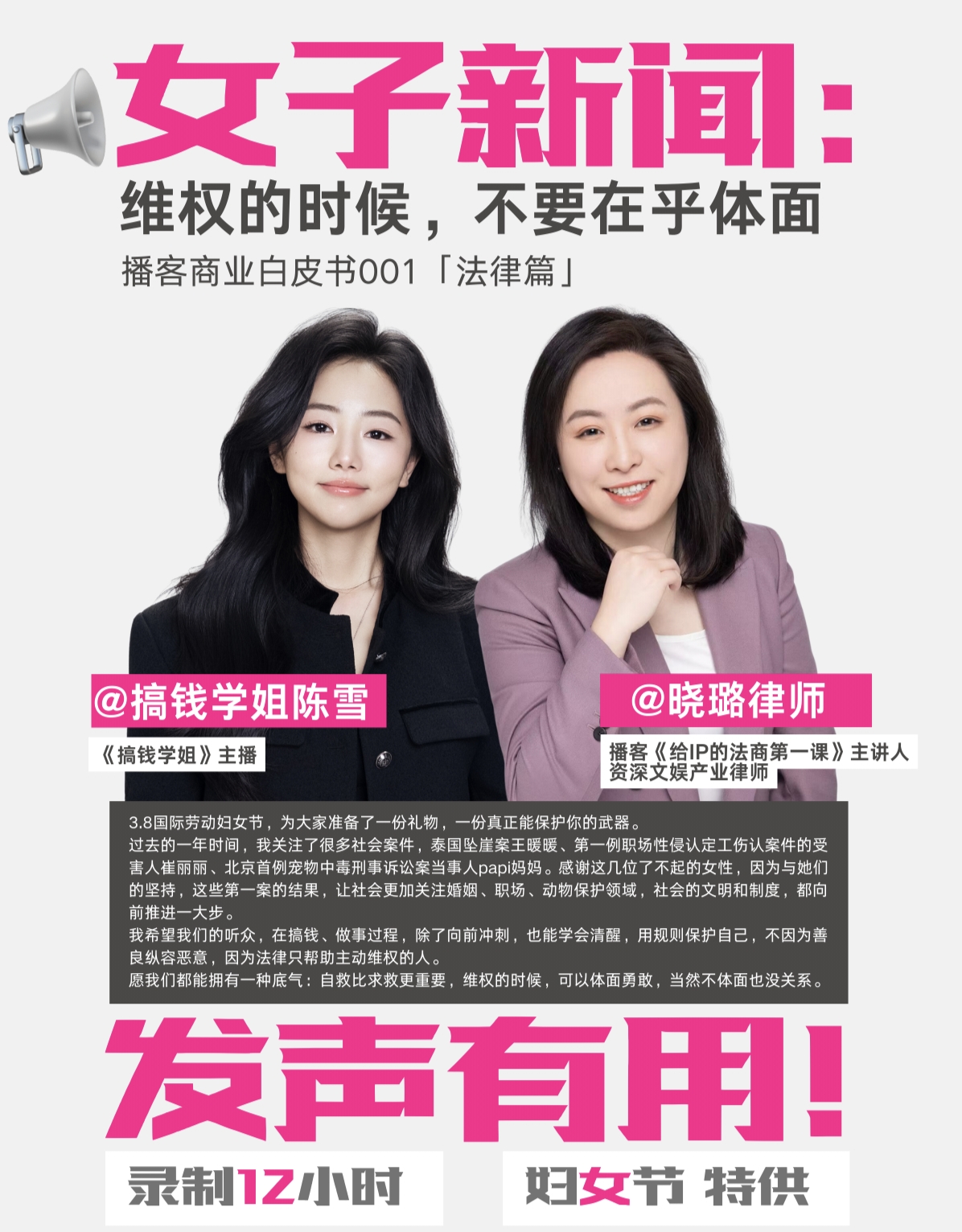 这次我们一起进行了数小时的深度复盘,直面播客商业化的背后真相。从起号时“一拍即合”,到分家时“一地鸡毛”,和舆情风暴下的“生死存亡”,晓璐律师用独特的法律视角,破解播客创业路上的八十一难。