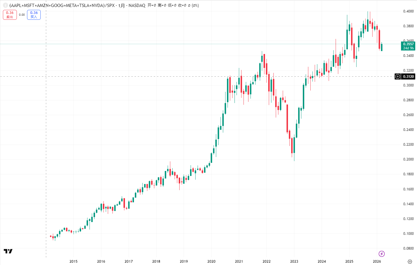1:24:50 处提及m7/标普500(是m7的平均股价):