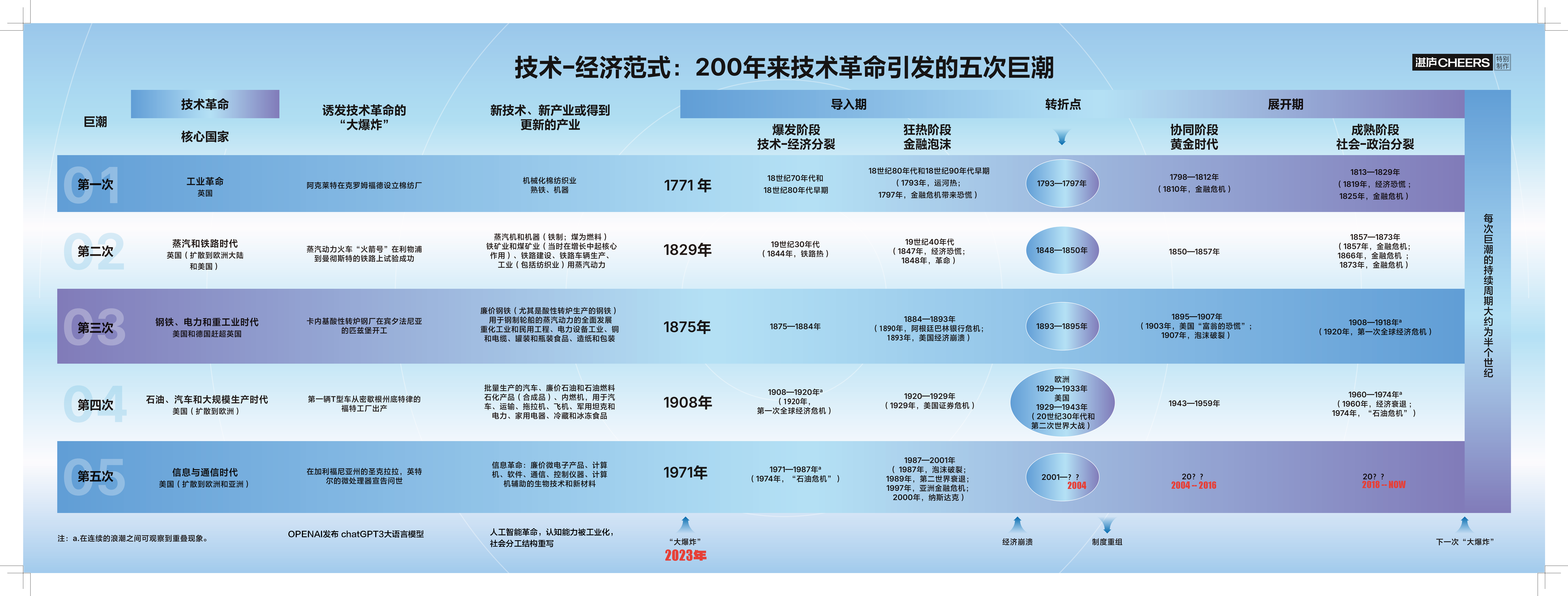 在技术革命的导入期,小红点的人赚了,其他人都变穷了。再然后,大家没需求了,小红点也穷了。进入转折期。最后大家在新技术范式的技术上,在生产组织范式,商业范式,社会制度范式上重新达成共识,进入展开期。