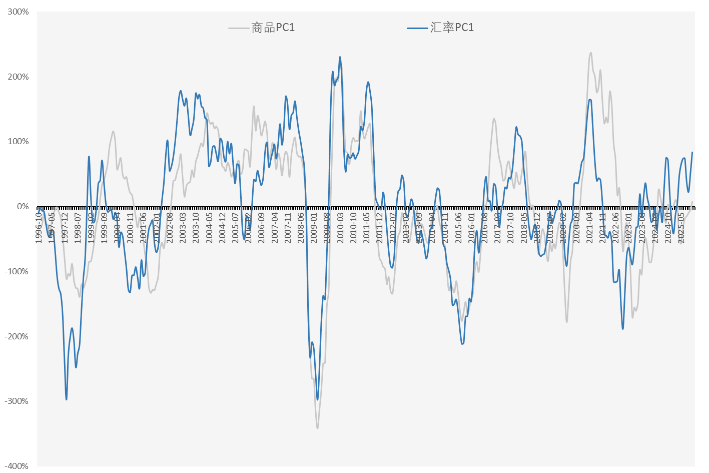 1:25:17 处提及商品的第一主成分和汇率的第一主成分的对比: