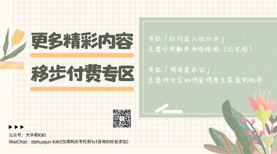 好啦,那么今天的分析就到这里结束啦,想看更多精彩内容的可以移步到公众号大华君kiki的专栏,感谢你们的收听,我们下期内容见,拜拜~