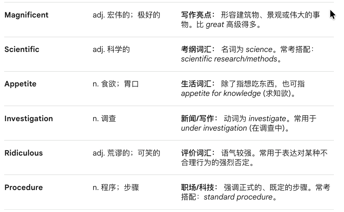 📋 词汇表 (Vocabulary & Application)