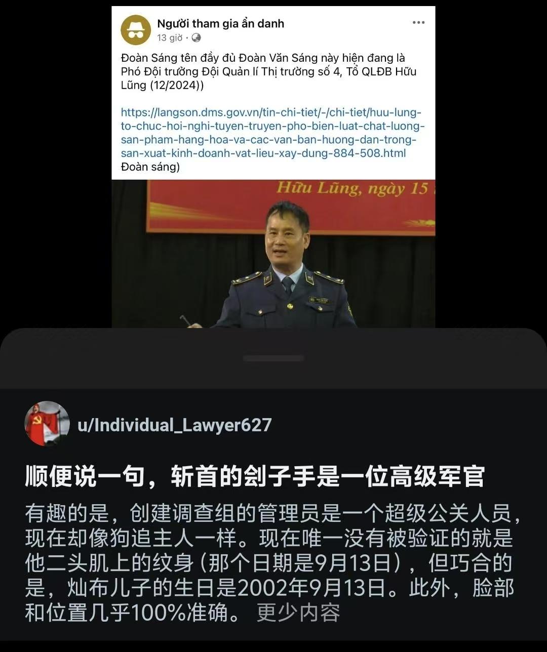 网友们花了几个月时间进行破案,终于找到了凶手,这名凶手还是越南的一名公职人员,名字叫段文创,他是越南谅山省市场管理队第四队副队长。从他的手法来看,他一定不是第一次作案。