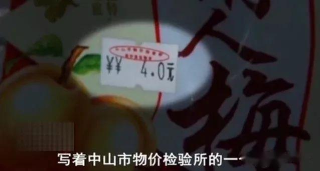 一包情人梅的包装袋上贴有一个标签,写着中山市物价检验所
