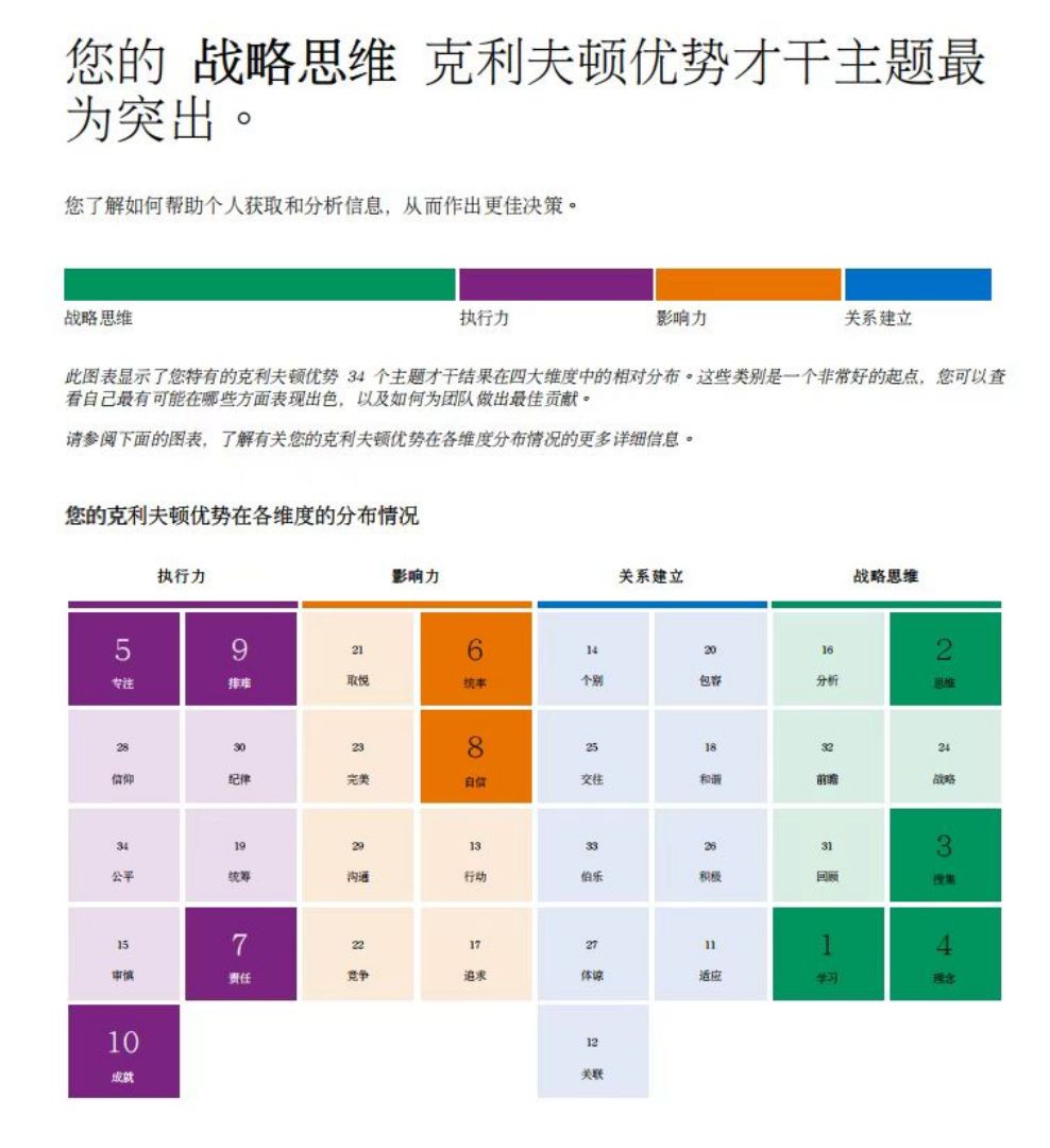 盖洛普前四项被“战略思维”全面霸榜(学习、思维、搜集、理念)。曾因“想太多做太少”深陷职场内耗,正运用“统率”与“专注”才干稳步迈向自己的操盘手目标。