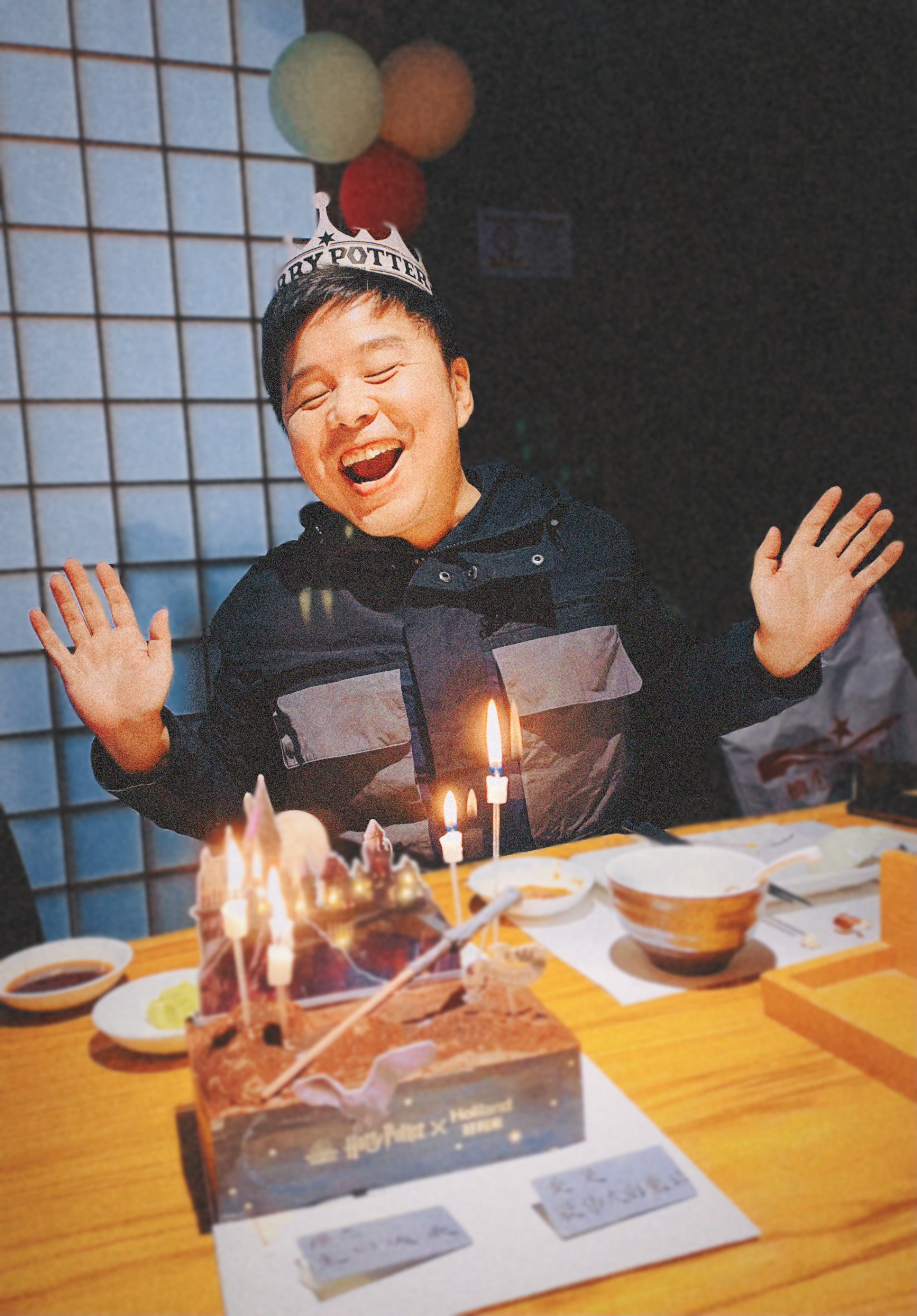 图为给缪老师过生日,哈利波特的蛋糕,他开心极了