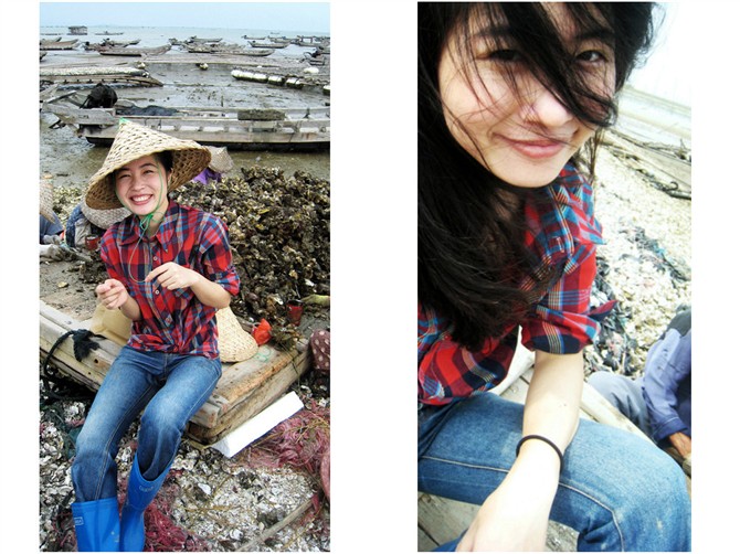 “2011年回家乡帮家里,海边开海蛎干活,戴斗笠穿水鞋。难得留下一张照片。很快我们就拆迁了”