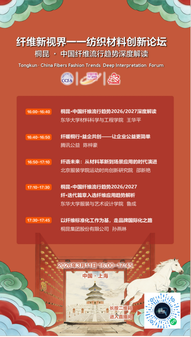 如果你对这份纤维趋势报告感兴趣,欢迎关注3月11日在上海举办的中国纤维流行趋势发布会及企业产品发布会,以及纺织材料创新论坛。
