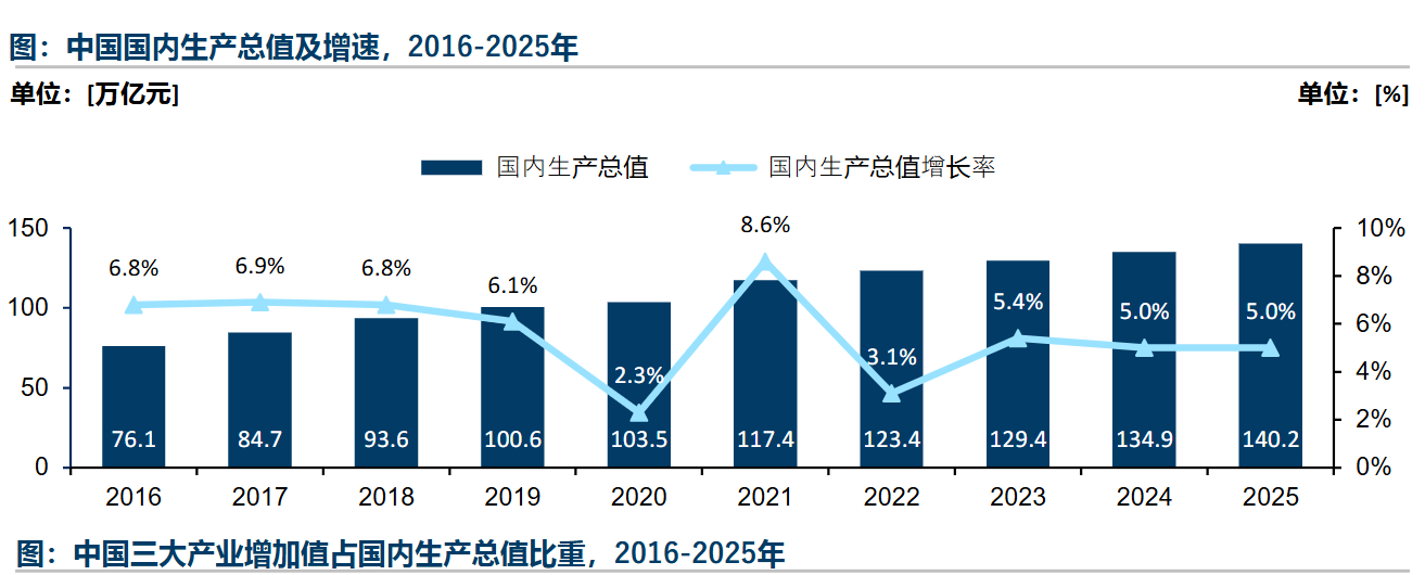 先看核心数据,中国宏观经济为行业托底。图1(研报P9)显示,2025年中国第三产业对GDP贡献率达61.4%,服务业主导的经济结构为消费升级铺路;