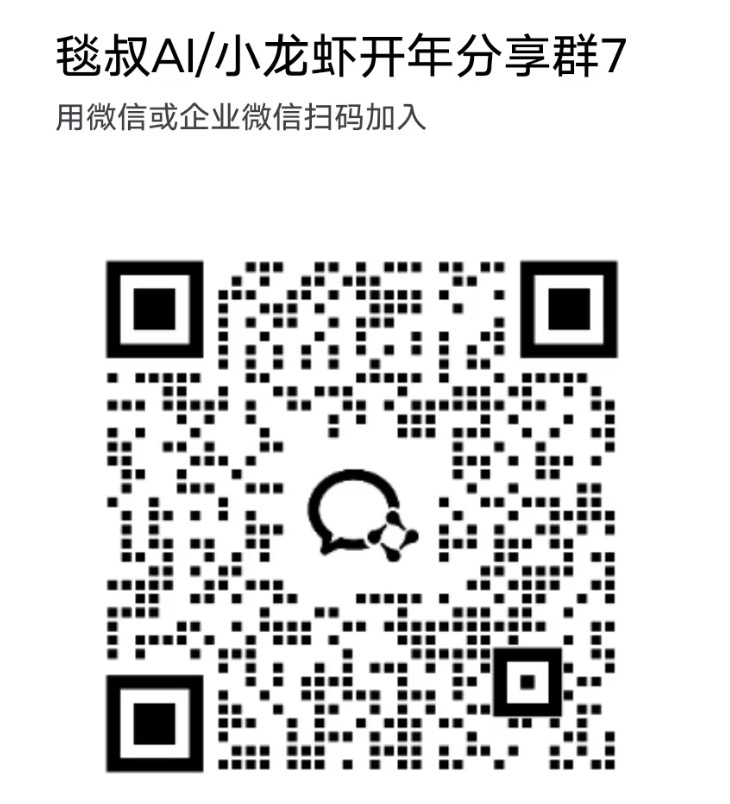 另外对养小龙虾有兴趣的朋友,可以扫码加入「毯叔AI/小龙虾开年分享群」,接下来的15天,我会和团队一起给大家分享 AI 和小龙虾提效赚钱的最新方法和思路,也欢迎大家能加入:
