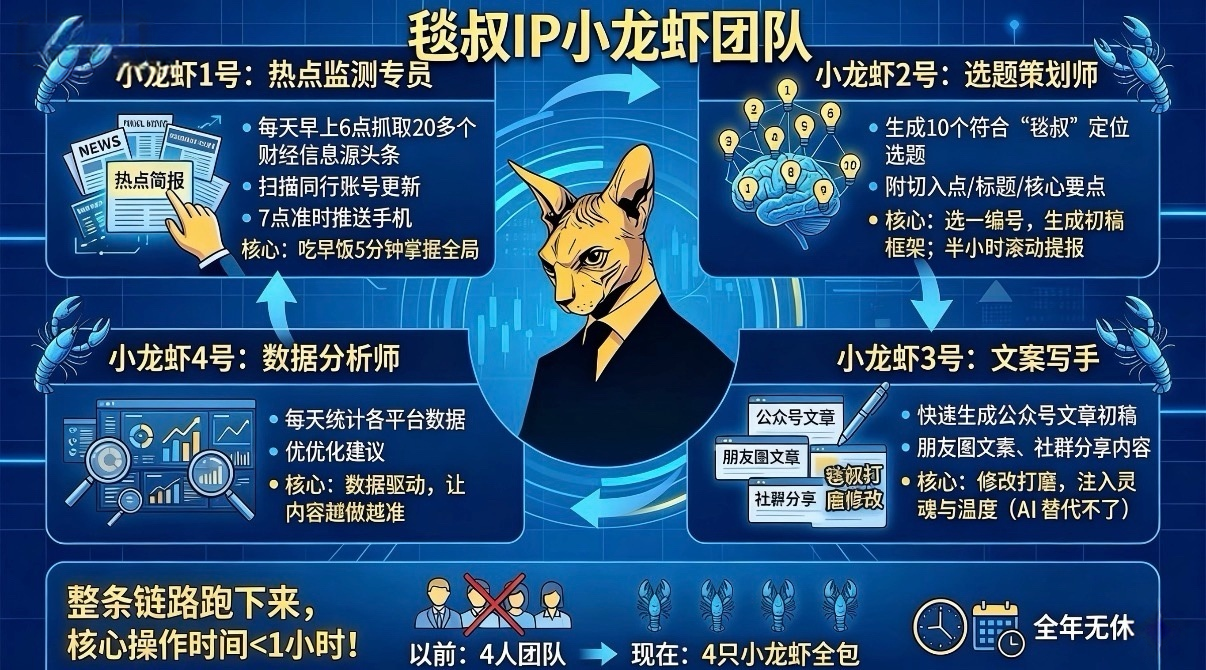 00:00:10 毯叔实战:用OpenClaw养了4只龙虾,每天工作一小时