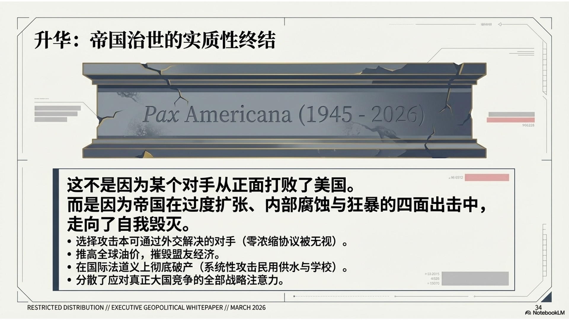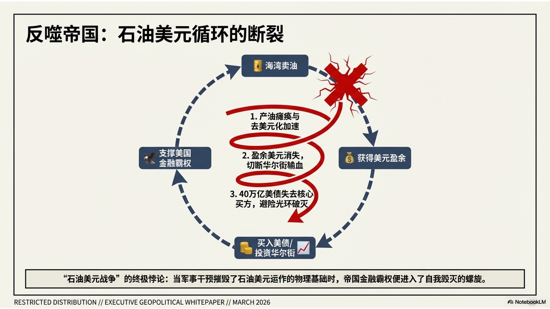 节目指出,这标志着“美国治下的和平”(Pax Americana)走向终结,石油美元体系在战争反噬下加速瓦解。