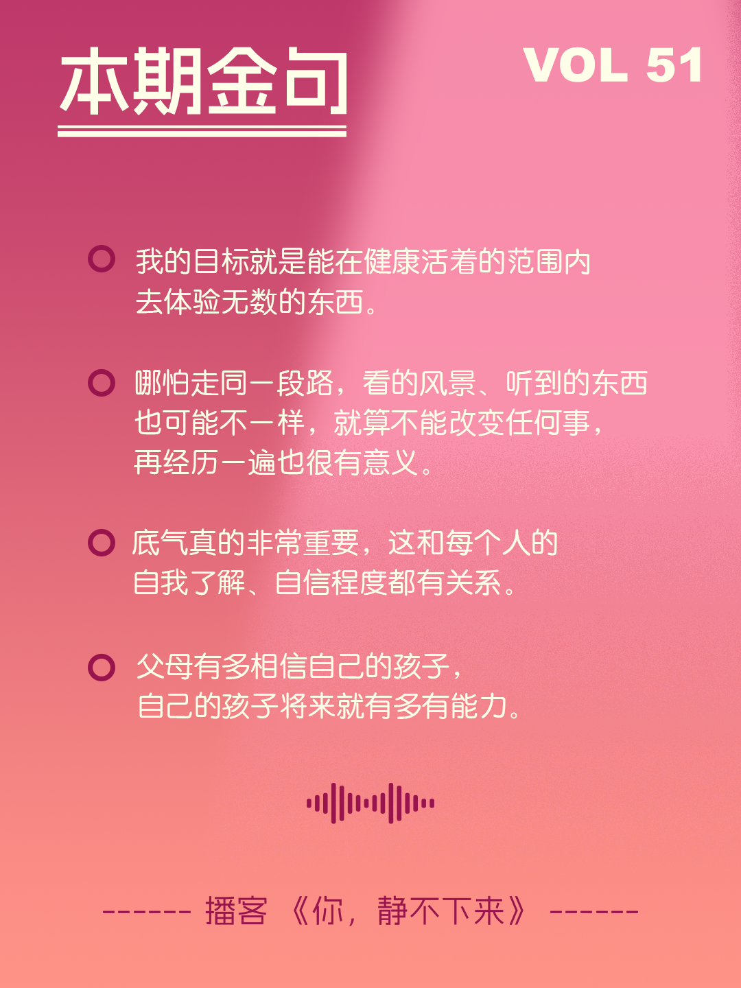 感谢大家订阅收听《你,静不下来》,你的成长中有哪些让你至今难忘的事?欢迎在评论区分享你的故事。“听友来信”系列持续征稿中,如果你也有一些不想和身边人诉说的困扰,爱情、生活、职场上无法解决的问题,都可以通过 点击链接 投稿给树洞或微信联系小助理ni_jingbuxialai,让我们像老朋友一样聊聊天。
