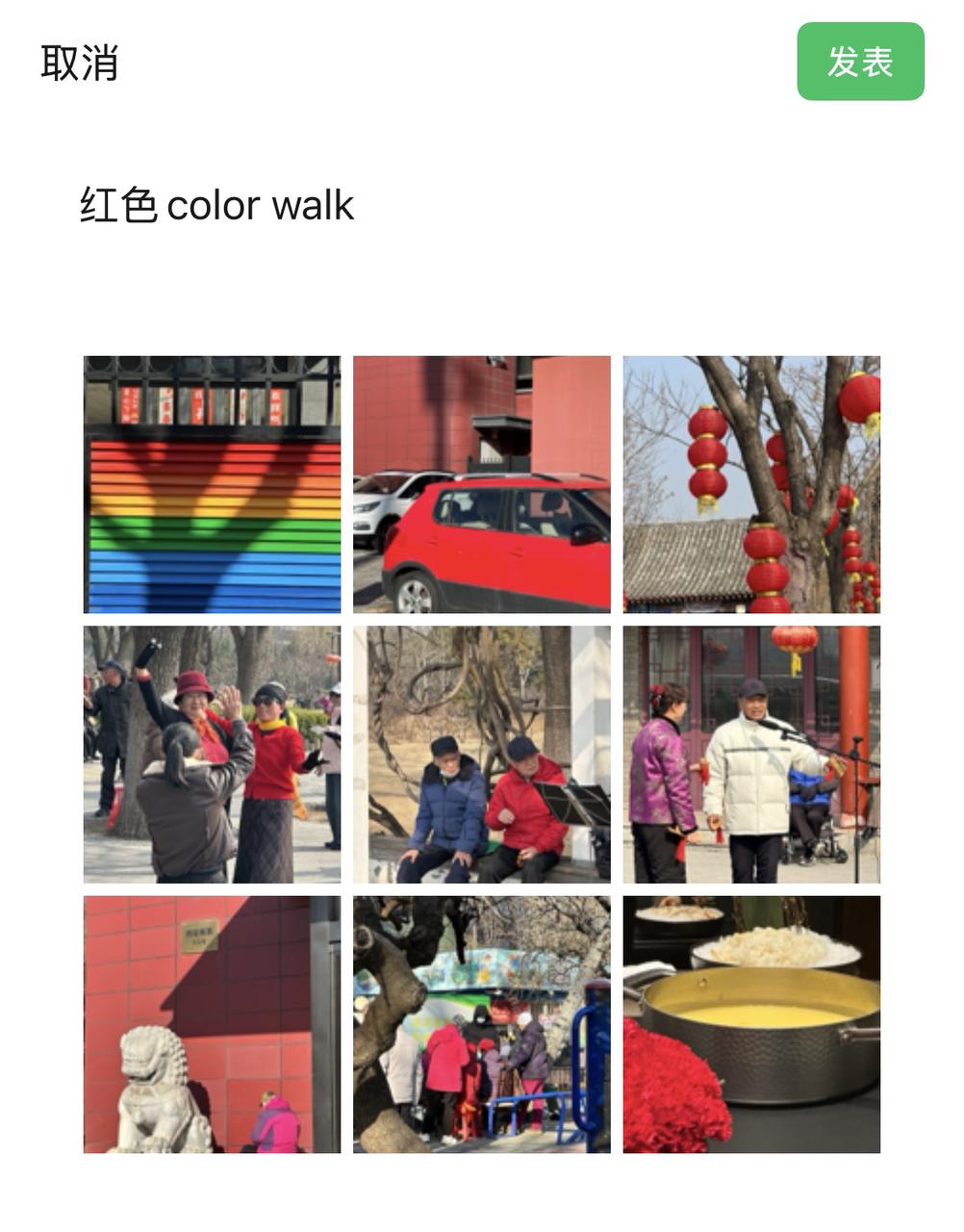 - Colorwalk做法:出门前选定一个颜色,在大街上观察并拍摄这个颜色的事物组成一组图片。