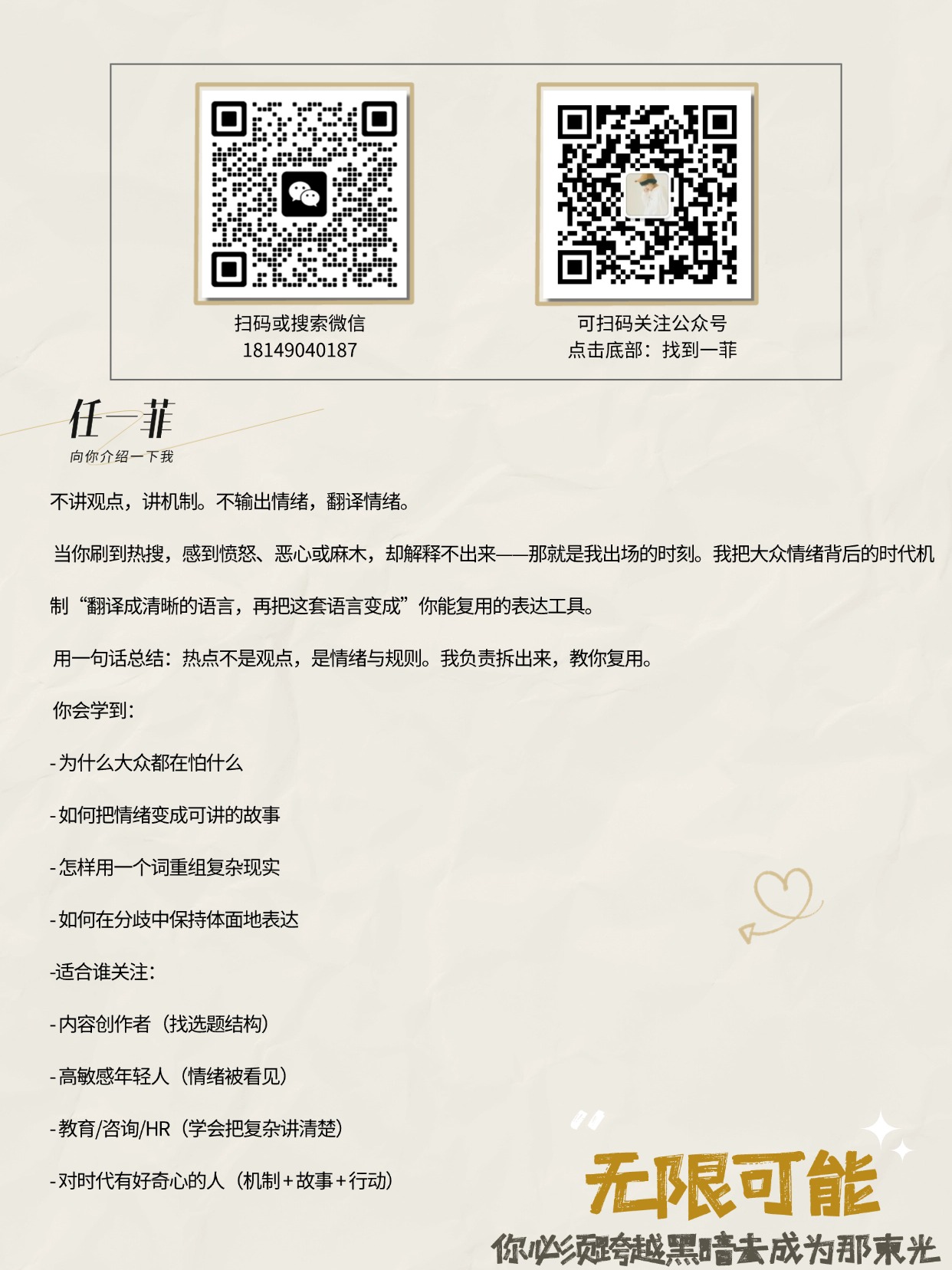 “雪崩发生时,没有一片雪花是无辜的。但我们可以选择,不去走那片完全随波逐流、失去自我的雪花。”