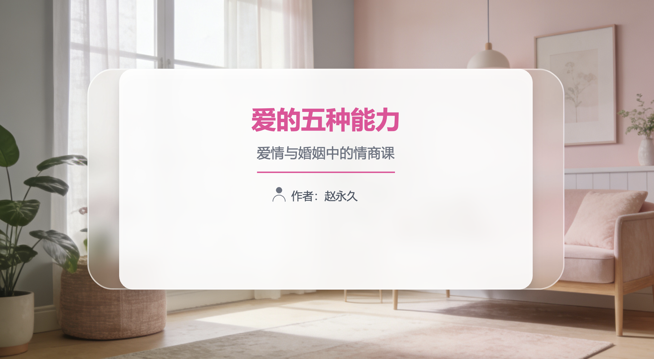 大家好,今天我将和大家分享一本关于爱情与婚姻的经典书籍——《爱的五种能力》。这本书被誉为“爱情与婚姻中的情商课”,作者赵永久先生通过自己的亲身经历和多年的咨询经验,为我们揭示了经营幸福亲密关系的核心密码。希望通过这次分享,能帮助大家更好地理解爱、学习爱、拥有爱。