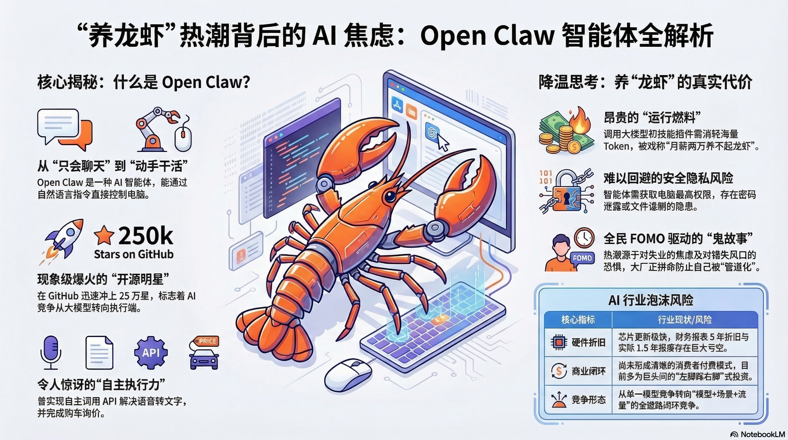 我们从华尔街那份令人不寒而栗的《2028全球智能危机》报告聊起,起底天才程序员彼得·斯坦伯格如何在摩洛哥的酒店里敲出这个“超级物种Open Claw”的?同时,我们也为你泼一盆冷水:拆解本地部署 AI Agent 极高的隐形成本、致命的数据安全隐患,以及科技巨头们为了不被“管道化”而掀起的疯狂算力军备竞赛。这究竟是一场生产力的彻底解放,还是一场依靠“左脚踩右脚”吹起来的巨大泡沫?