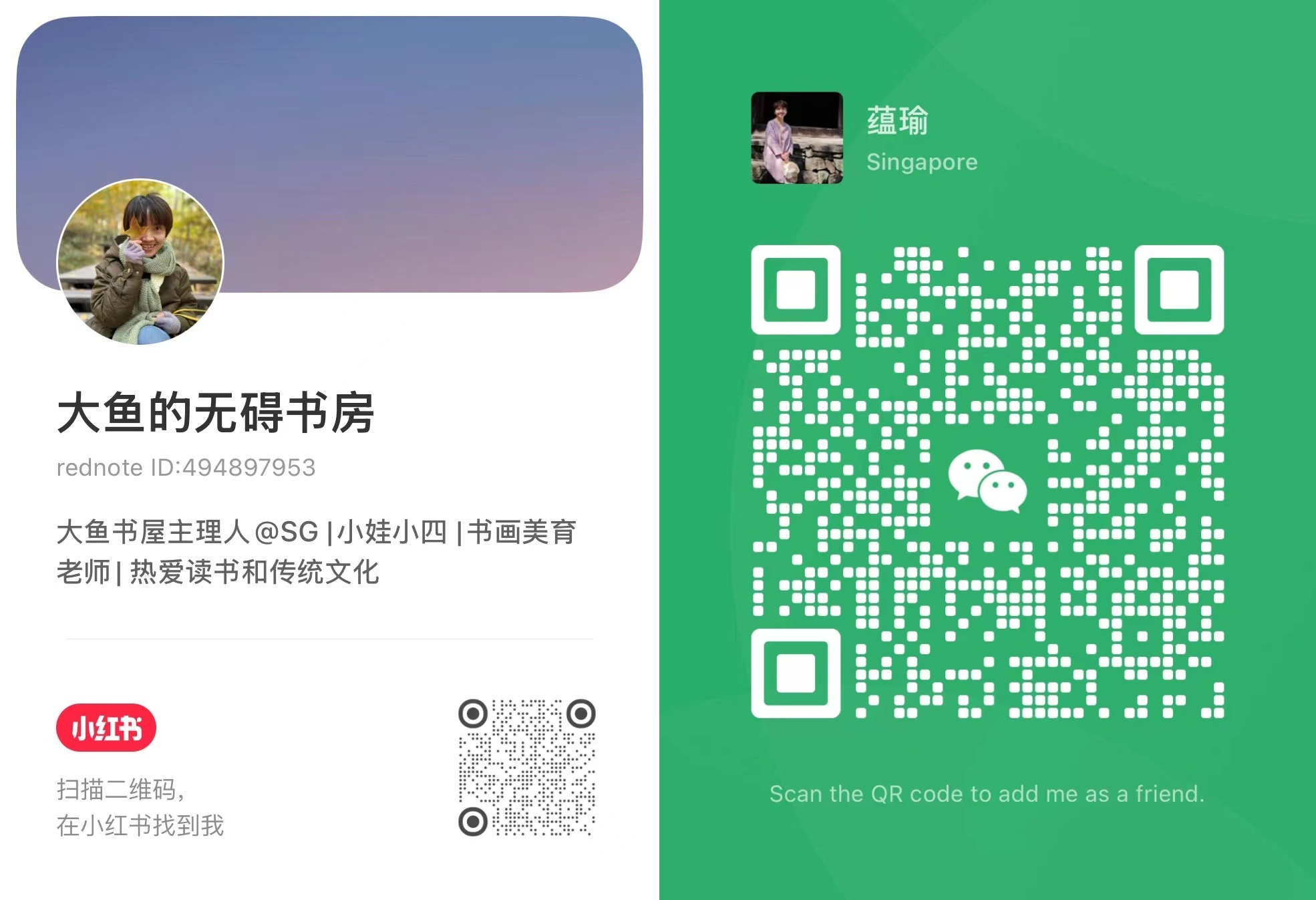 大瑜,北大中文系才女,前中国互联网大厂精英,现长居新加坡从事书法和美育工作,“大鱼书屋”主理人