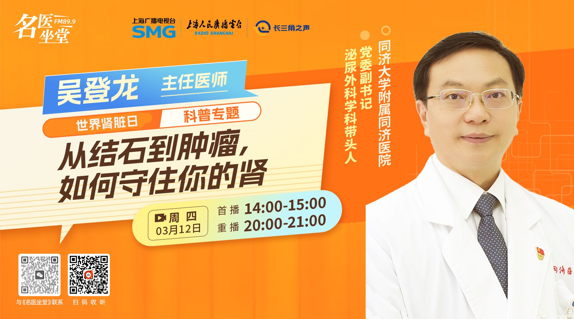 本期节目,为您邀请到同济大学附属同济医院党委副书记/泌尿外科学科带头人 吴登龙 主任医师,和您聊聊“从结石到肿瘤,如何守住你的肾”。