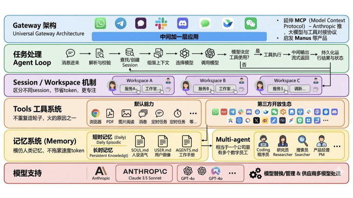 48:00 Gateway、agent loop、session、tools、memory:OpenClaw 为什么能表现得像一个“数字员工”