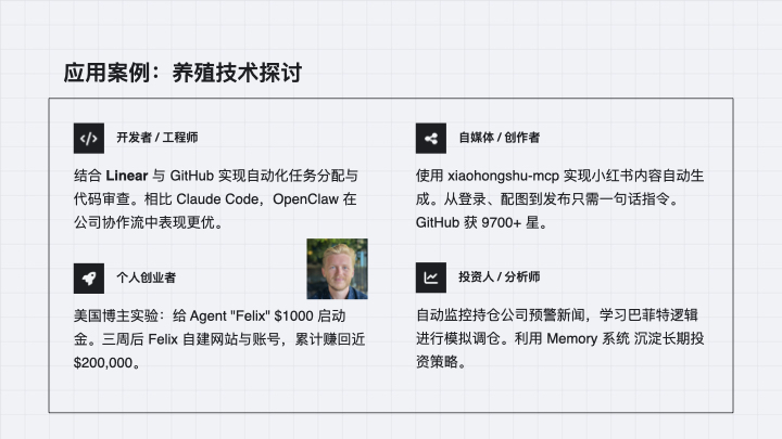 34:49 它到底能干什么:开发协作、自媒体流水线、投资监控,以及那些听起来很诱人的真实案例