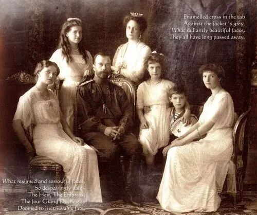 俄国末代沙皇尼古拉二世一家,他的妻子亚历山德拉是维多利亚女王的外孙女,携带血友病基因,小儿子阿列克谢是血友病患者