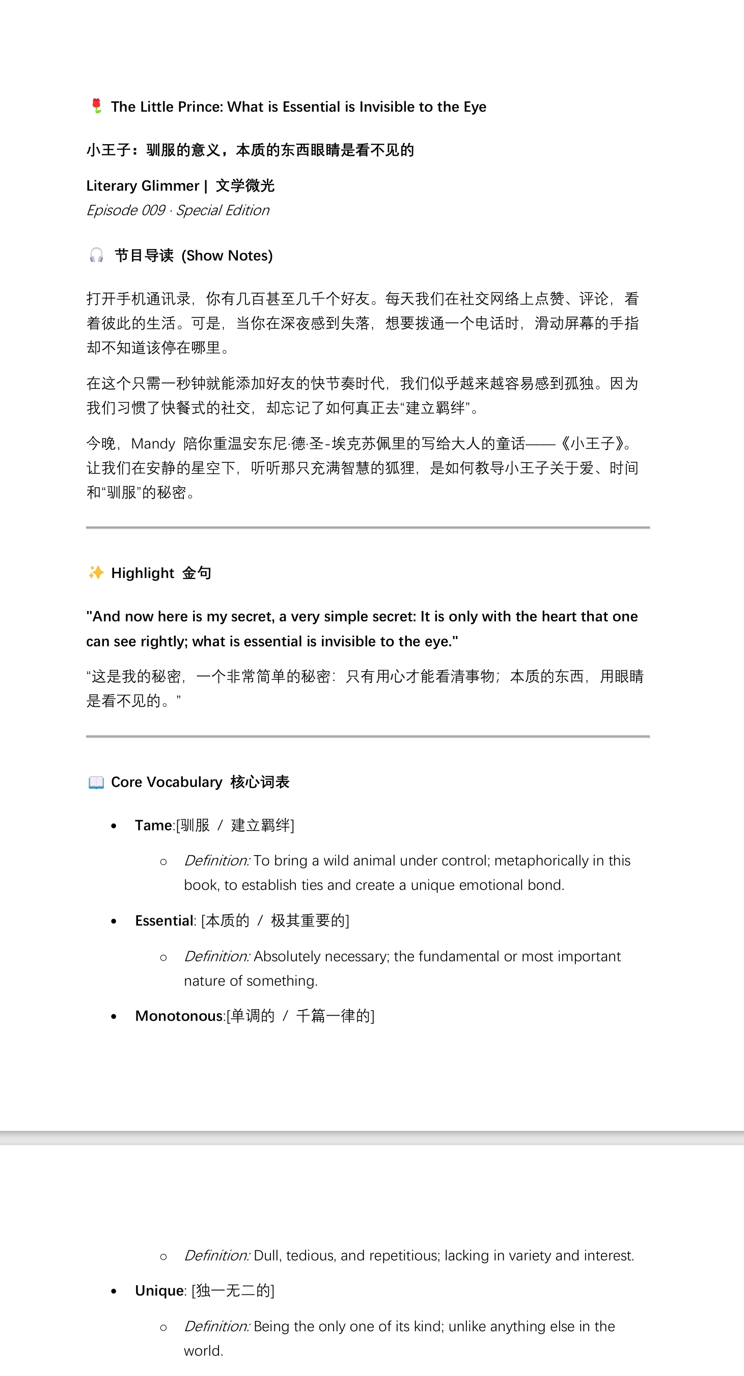文学微光 09 | 🌹 小王子:驯服的意义,本质的东西眼睛是看不见的