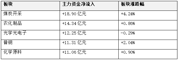 主力资金净流入前五板块:
