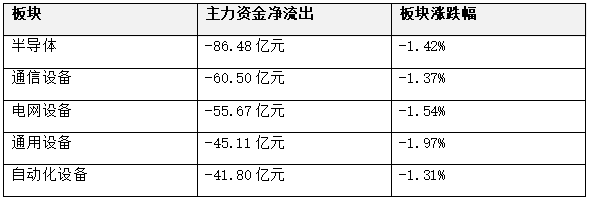 主力资金净流出前五板块: