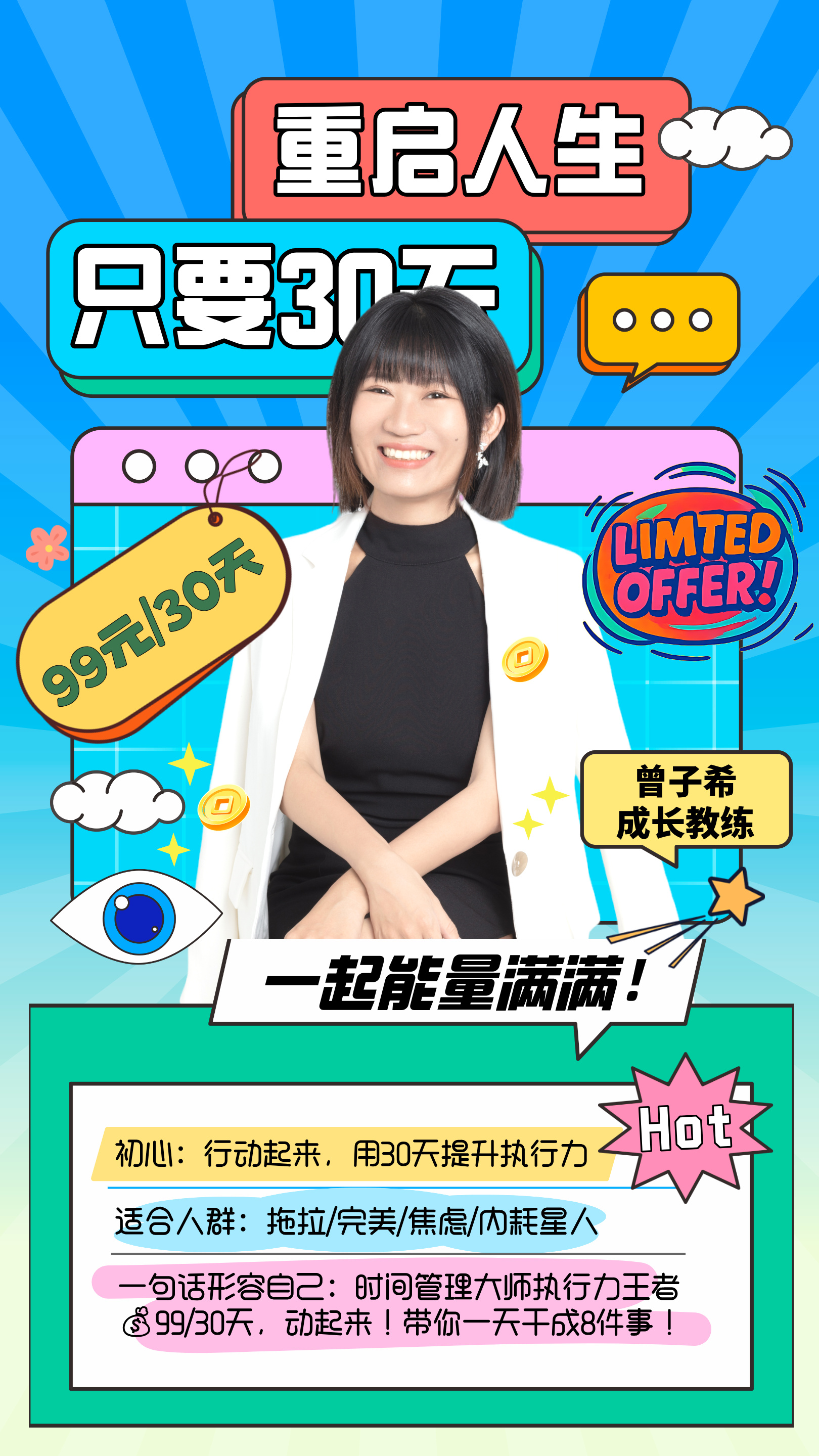 如果你经常拖延,焦虑,完美主义,强烈推荐你来我发起的30天重启人生玩家计划!
