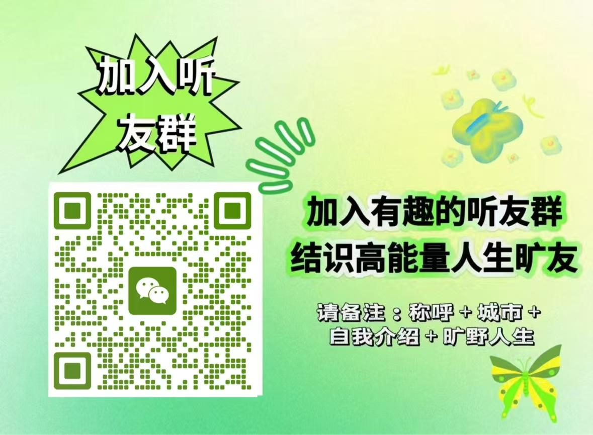 想要加入听友群,认识一群高能量旷友的小伙伴,可以下方shownotes,添加小助理:kuangyerensheng888,备注:听友群