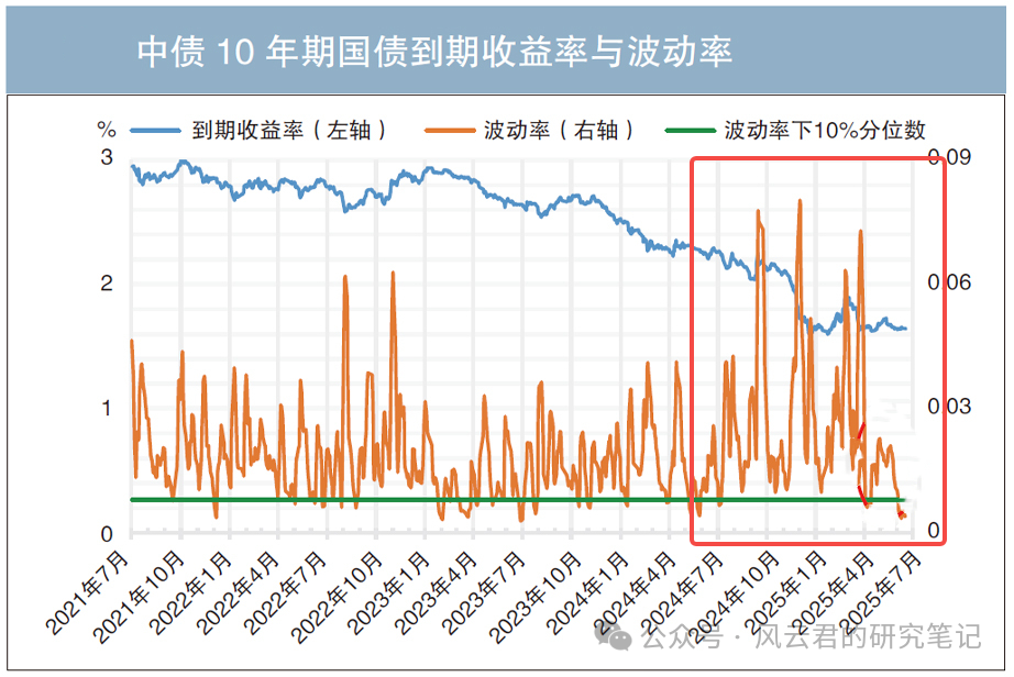上图可以直观地看出,尤其是24年下半年到25年上半年,10年期国债收益率波动率显著提升。