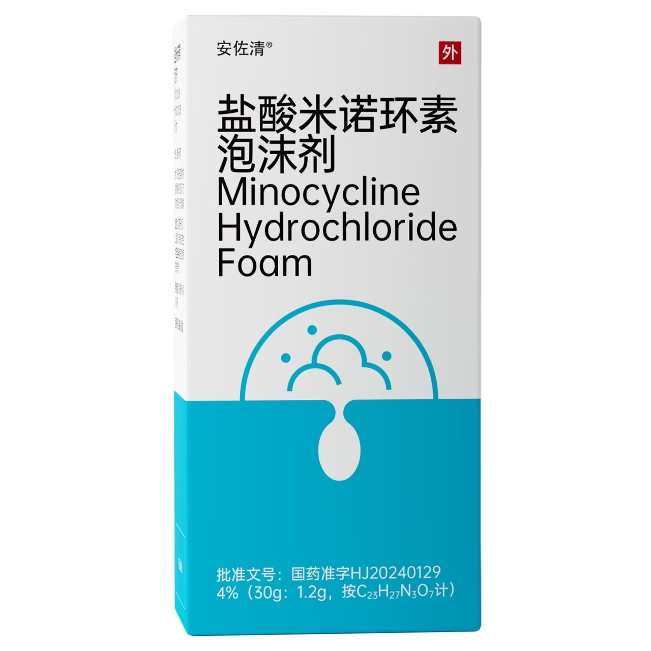 图为节目中提到的米诺环素泡沫剂。处方外用药 。疗效可媲美口服抗生素,建议联用以减少耐药风险 。请务必在专业医生指导下使用。