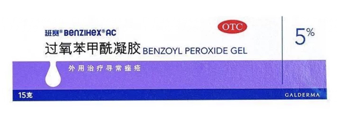 图为节目中提到的班赛凝胶,OTC外用药。建议局部薄层点涂以缩小痘痘体积,切忌大面积使用以免引发剥脱刺激。