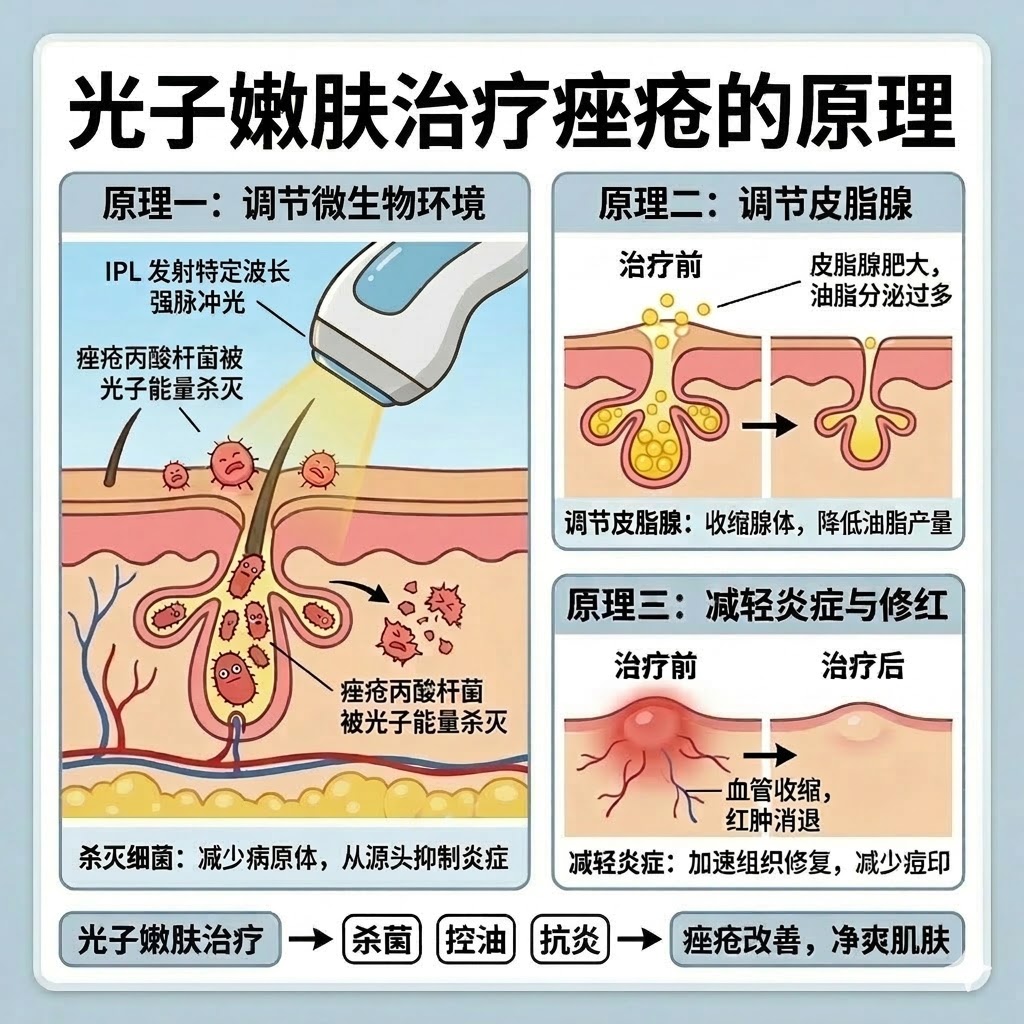 光子嫩肤在痤疮治疗中扮演着“多面手”的角色。主播在节目中分享到,利用特定波长(如M22的ACNE滤光片)产生的能量,能精准杀灭毛囊内的痤疮丙酸杆菌,从源头调节微生物环境并抑制炎症爆发 。此外,光子不仅能调节皮脂腺、收缩腺体以降低油脂产量,还能针对红肿痘痘实现血管收缩,达到消肿修红并加速组织修复的效果 。对于下颌缘等反复爆发区域,应采取全模式的大面积治疗而非仅仅点涂,从而整体改善局部的炎症紊乱状态 。医美治疗具有专业门槛,请务必在医生指导下进行。