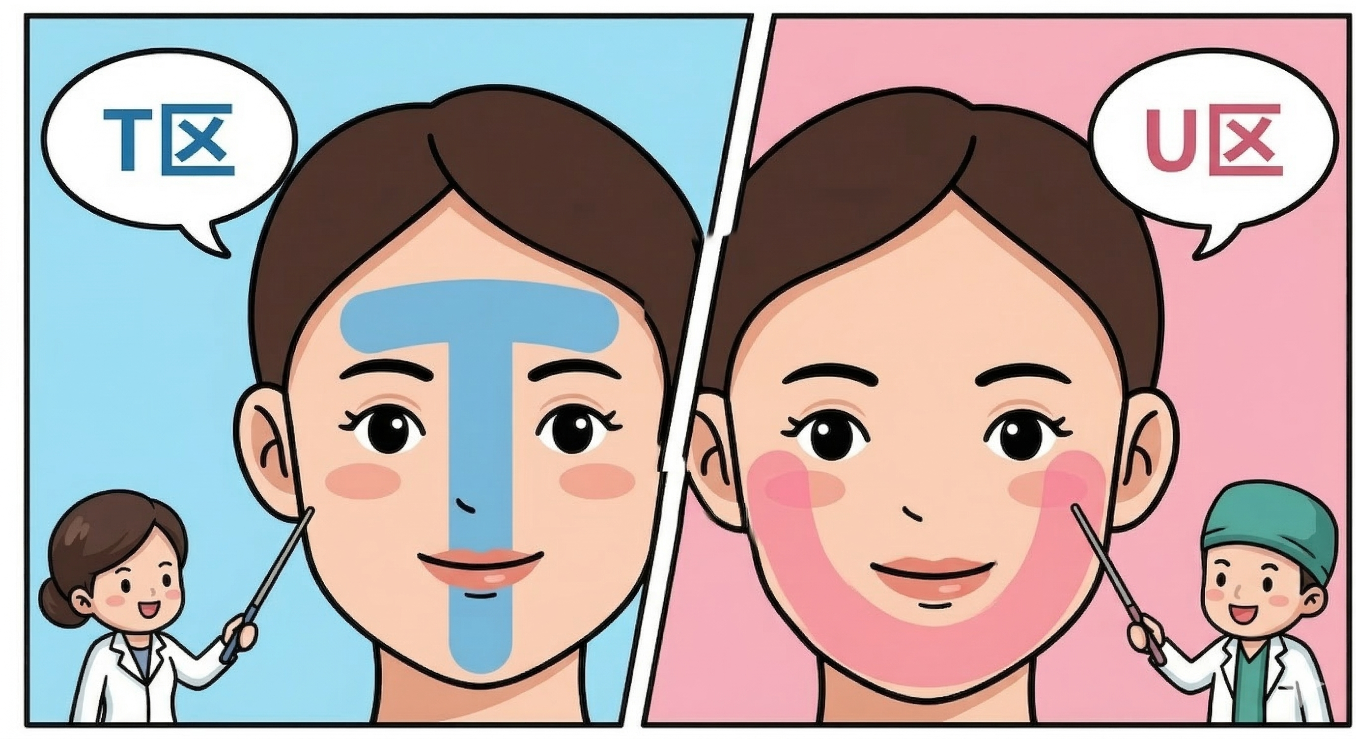T区多见于青春期粉刺,常与油脂及奶制品摄入相关 ;U区(含口周、下颌缘)则是成人女性痤疮的高发地,常伴随压力与激素水平波动 。临床建议采用“鸡尾酒疗法”,针对不同区域的皮损形态分区选酸治疗 。