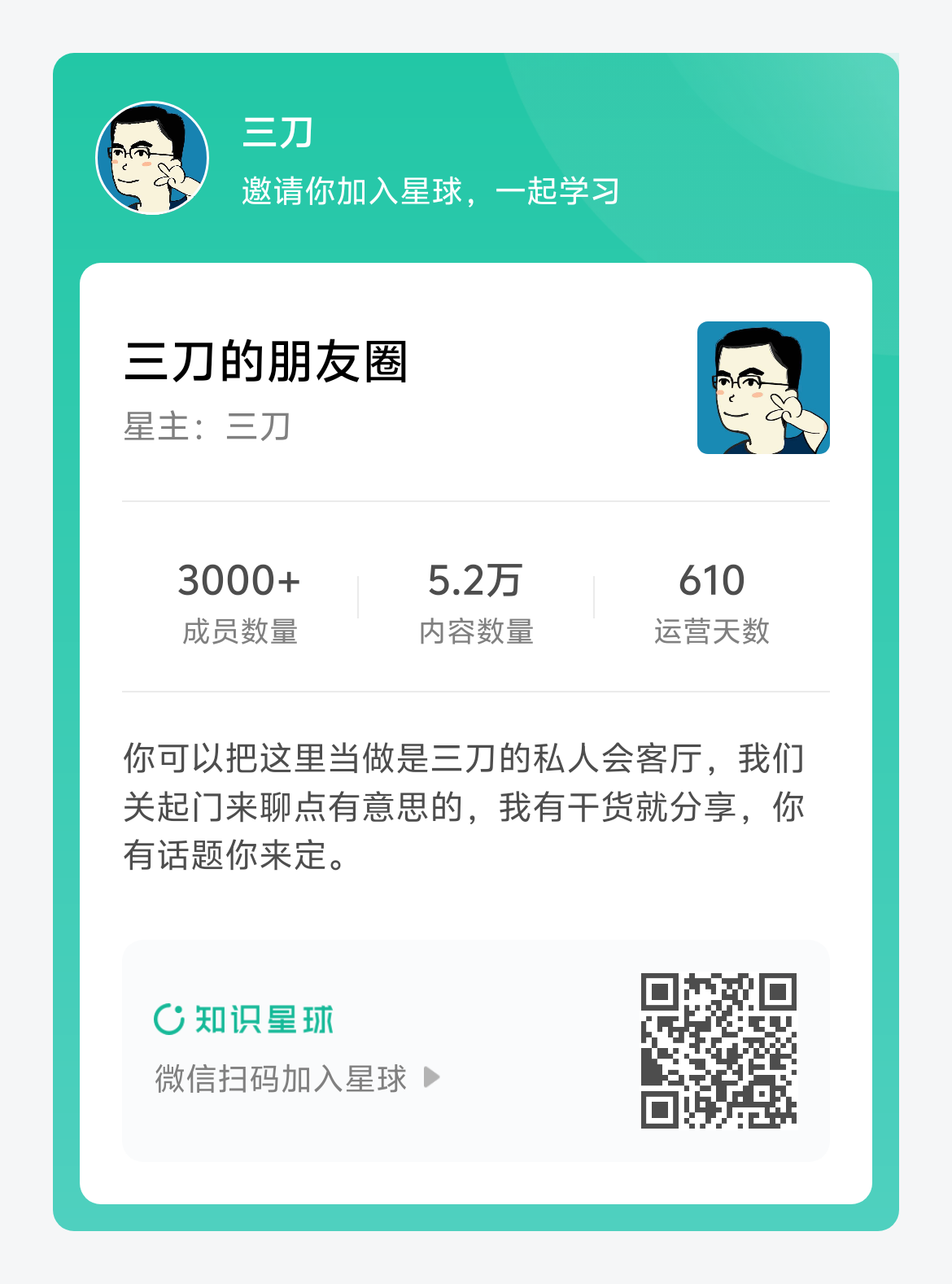 想与三刀1对1交流,扫码加入知识星球: