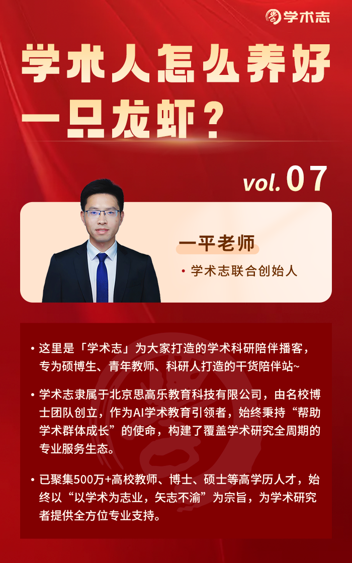 一平老师:新学术教育平台“学术志”联合创始人,北京思高乐教育科技有限公司总经理。中国人民大学社会学博士,重庆理工大学外国语学院研究生导师,研究方向为组织社会学。