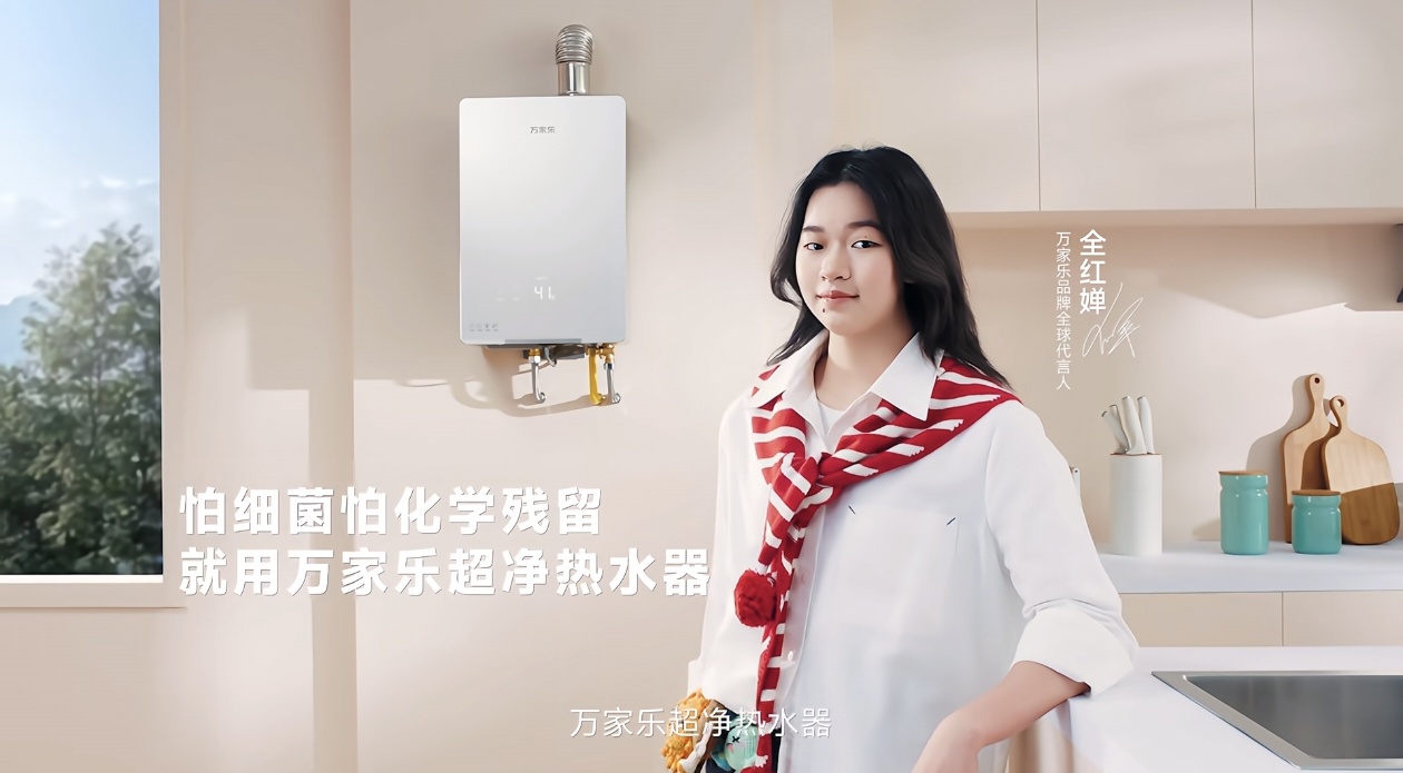 再看万家乐,一个深耕家电领域40年的国货老牌。它的核心卖点是什么?是 “纯净用水”,是把家里的水处理得最干净、最健康。