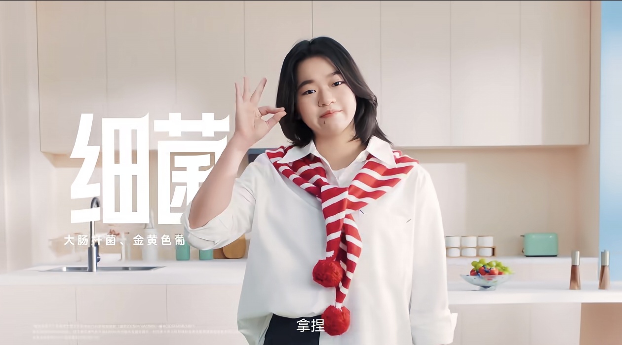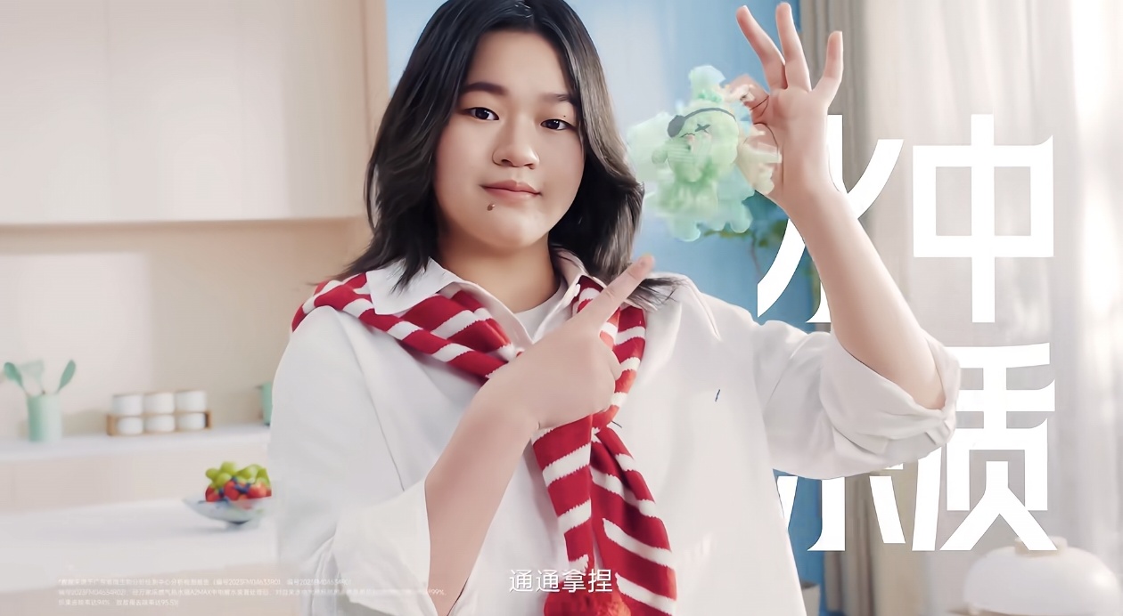 最后是姿态。全红婵的动作,比如比耶、轻触机器、自信微笑,拿捏一切的招牌动作,都非常生活化。这叫松弛感带货。商业摄影里,越不像是在卖东西,东西就卖的越好。她用一个亲切的动作,告诉观众:“相信我,这个东西好用。” 这种亲和力,就是转化力。
