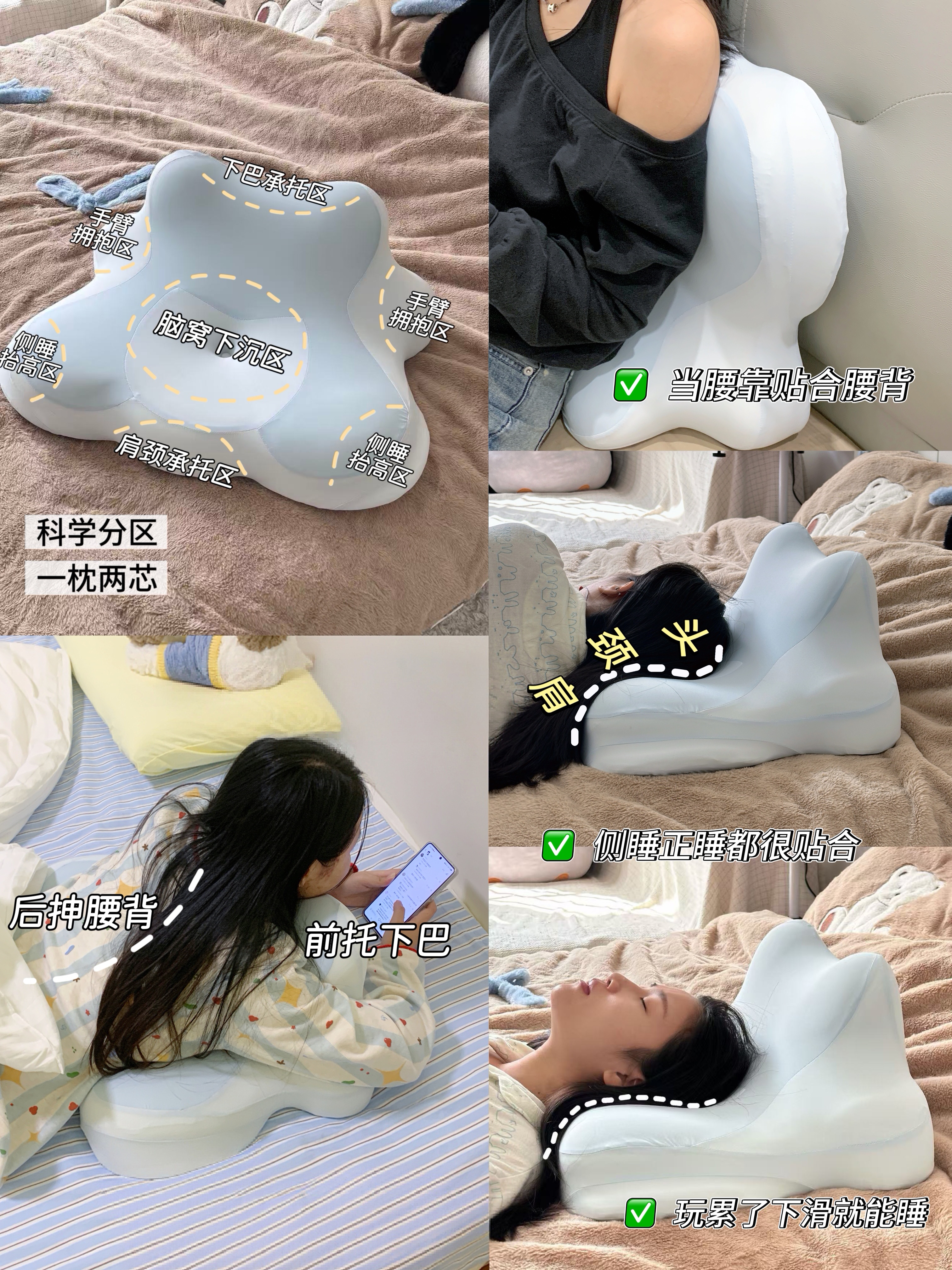 ✔ 多功能趴睡,它能趴着、靠着、躺着玩手机,还能顺带拉伸脖子和腰。