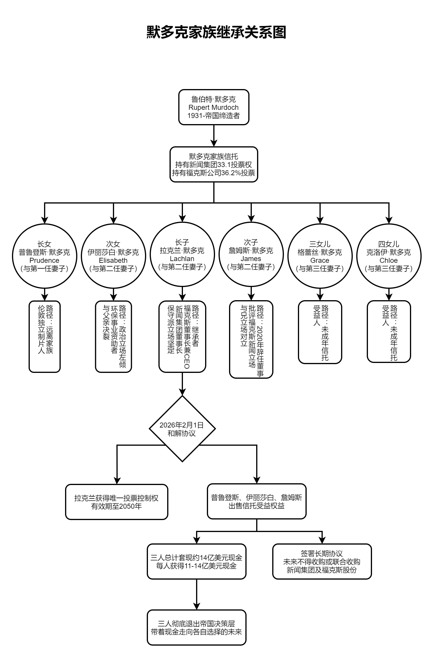 过去六期,我们遍历了迪士尼的童话城堡、华纳的百年沉浮、康卡斯特的管道帝国、索尼的跨界实验、派拉蒙的绝境求生,以及欧洲双雄的镜面对望。这些故事里,有天才的远见,有资本的冷酷,也有时代的巨浪。但有一种故事,我们始终没有正面触及——家族的故事。贝塔斯曼的继承风波让我们窥见了德国式的制度理性,但那终究是“去个人化”的传承。而今天我们要走进的这个帝国,它的历史与一个人的名字完全绑定,长达七十年。他的名字本身就是一种意识形态,一种商业模式,一种近乎偏执的野心。他就是鲁伯特·默多克。