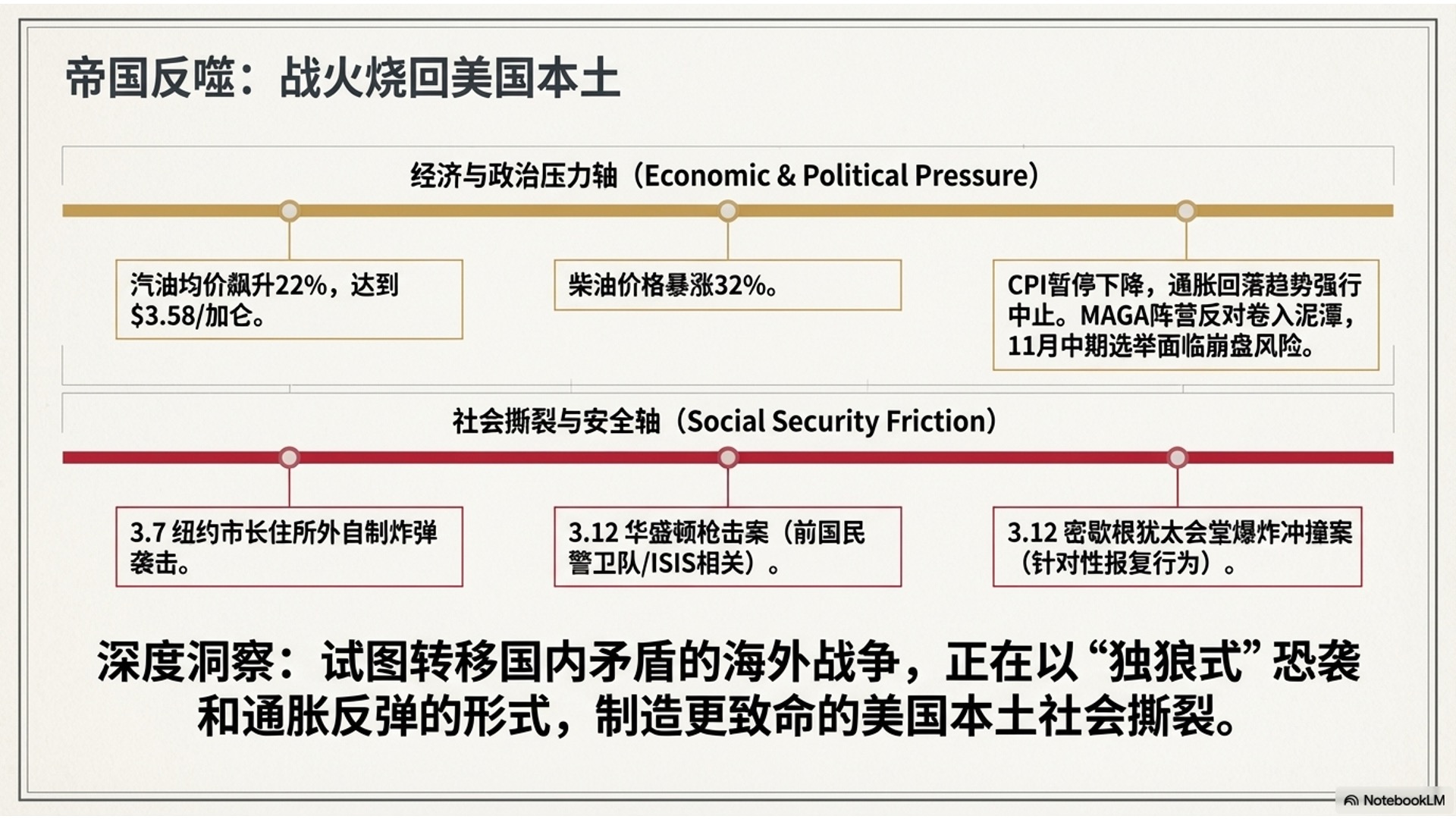 - 恐袭反噬:战争的极端情绪已蔓延至美国本土,引发针对犹太会堂等多起孤狼式恐怖袭击。